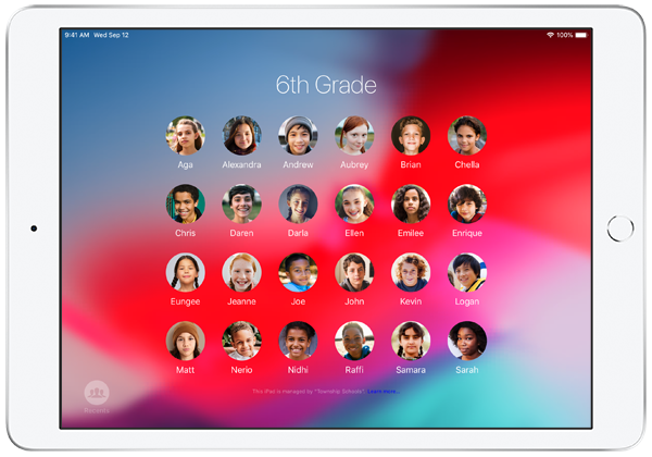 Na sdíleném iPadu a právě díky funkci Sdílený iPad může víc žáků používat stejný iPad, patřící škole, a přitom na něm mít přístup k personalizovanému (svému osobnímu) prostředí, kdy data každého žáka jsou soukromá a zabezpečená.